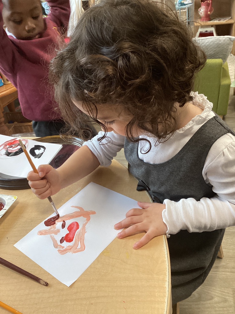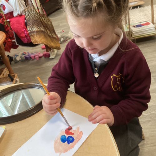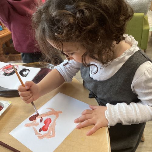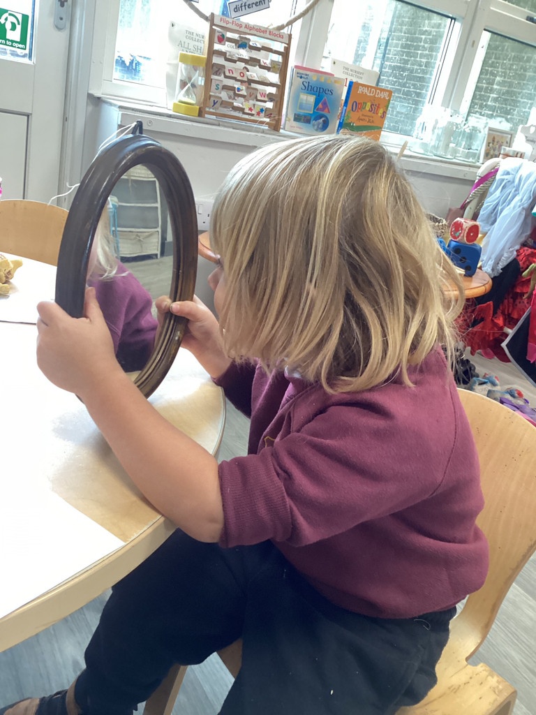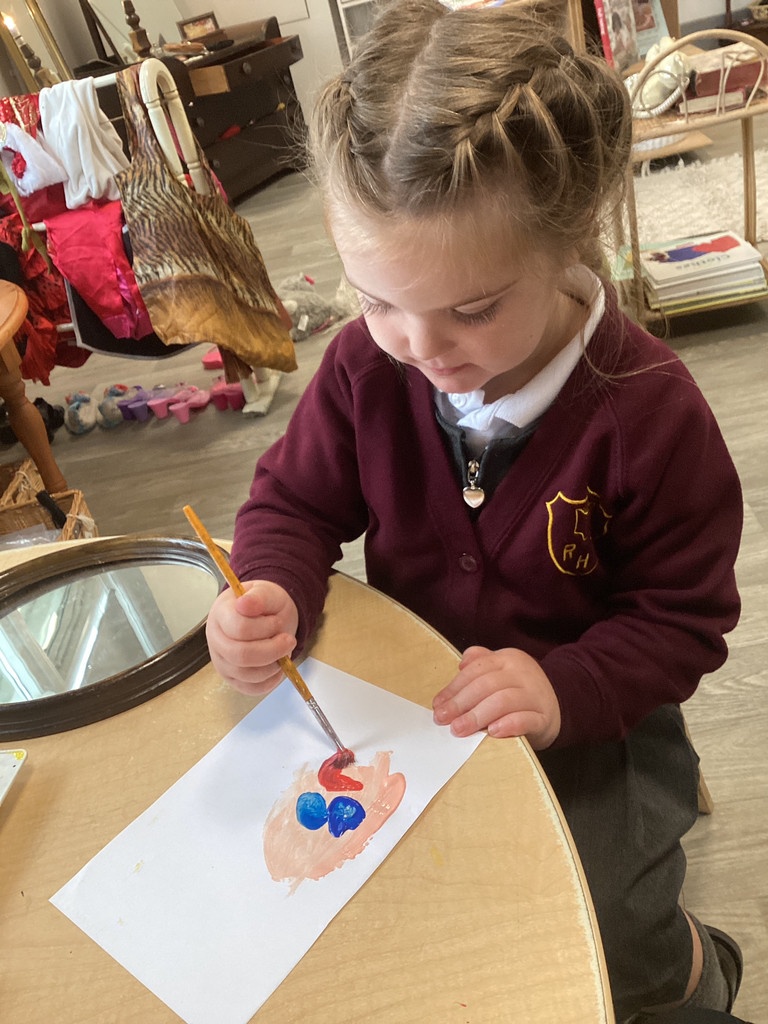 Nursery 3s have been creating self portraits! The children used the mirrors to look at their features and talk about how they looked, discussing similarities and differences. They then used the paints to represent themselves!