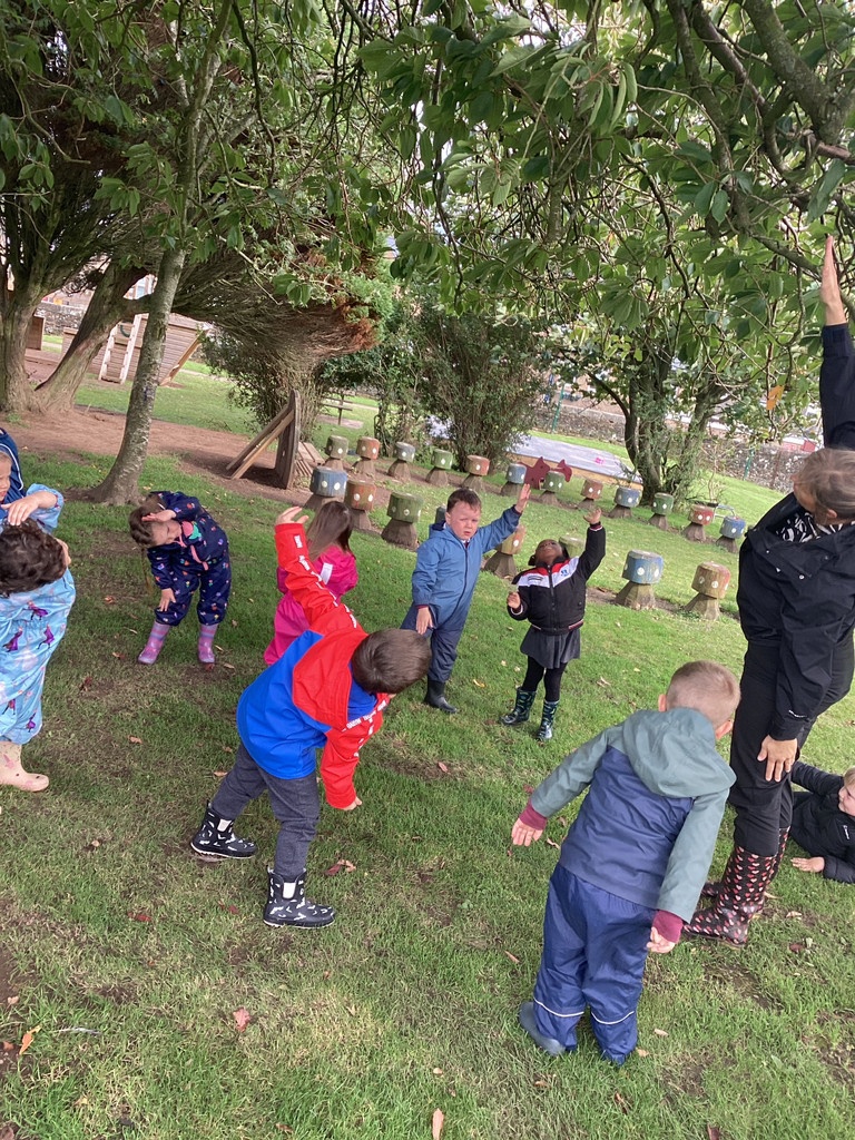 As part of Early Years Well-Being Week the Nursery 3s children took part in some outdoor yoga during Forest School Thursdays! The children were able to balance well and copy the different poses!