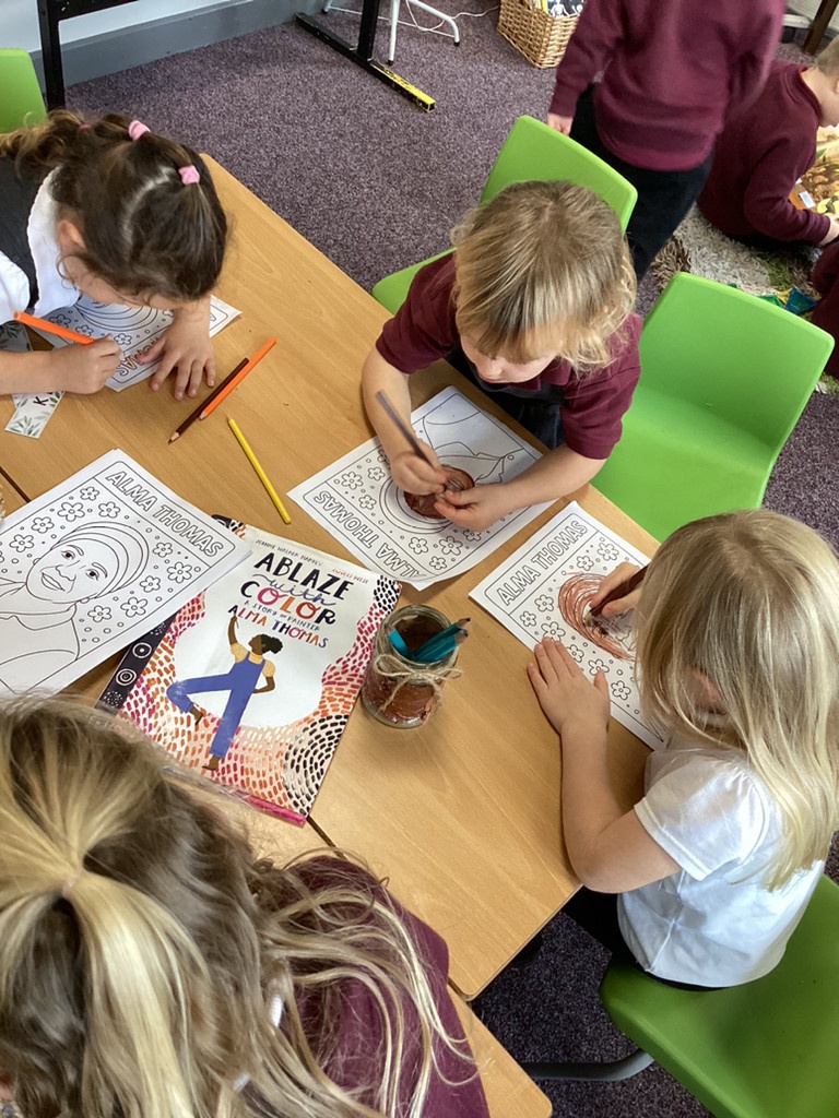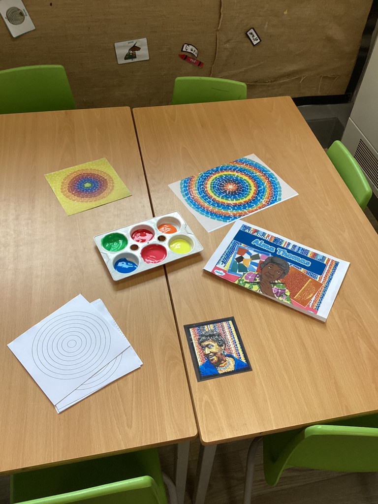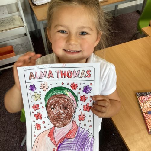 For our black history month, we found out all about the artist Alma Thomas. We learned that Alma was not allowed to go to school because of the colour of her skin and that her mother had to set up a school in her living room. When she grew up, Alma became a teacher herself and taught art to all students.