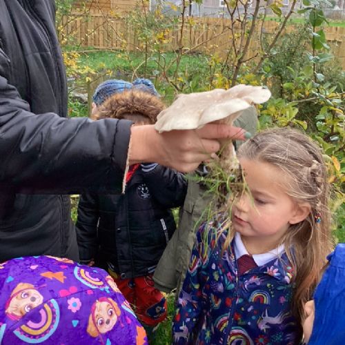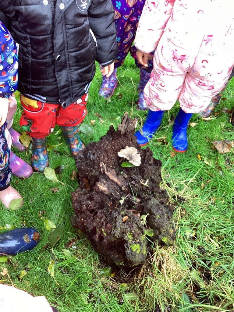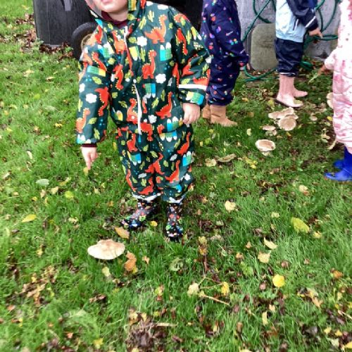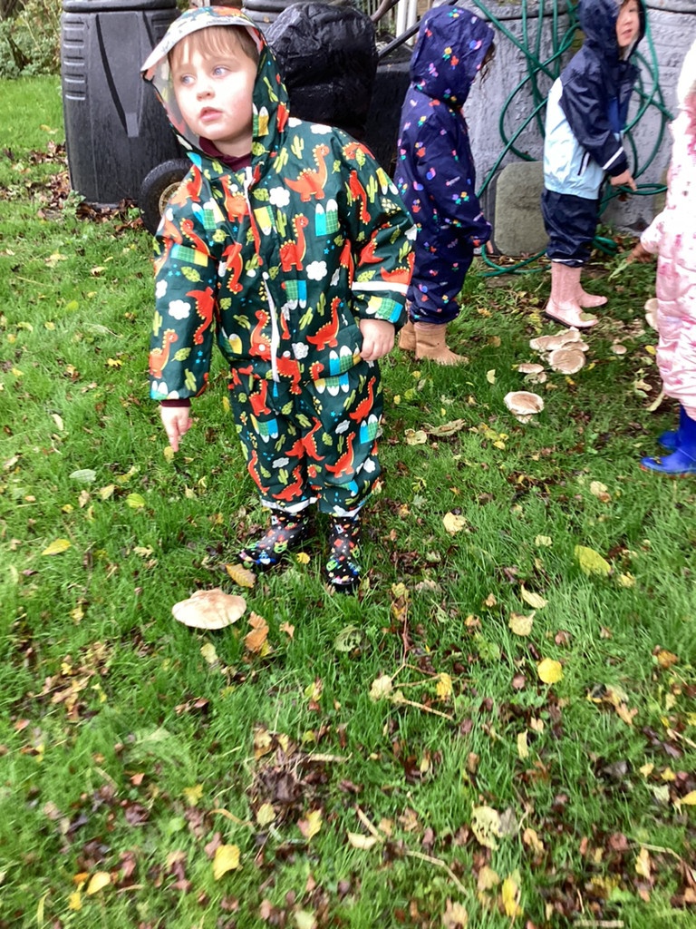 Reception had a very wet and windy muddy Mondays. We started off the session with talking about the weather. We then explored the garden, the children noticed there was some ginormous mushrooms, we had a closer look and noticed there was some orange ones too. We ended the afternoon with some free time.