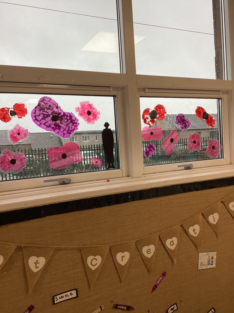 Reception created some gorgeous poppies to put in our window, to show our respect for Remembrance day.